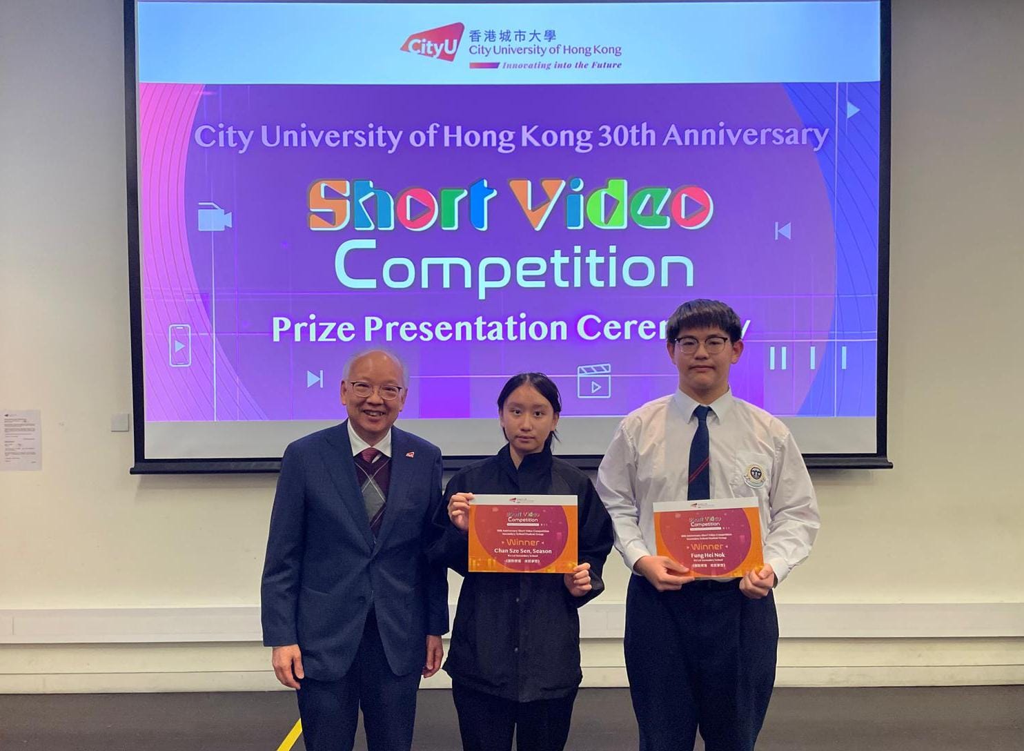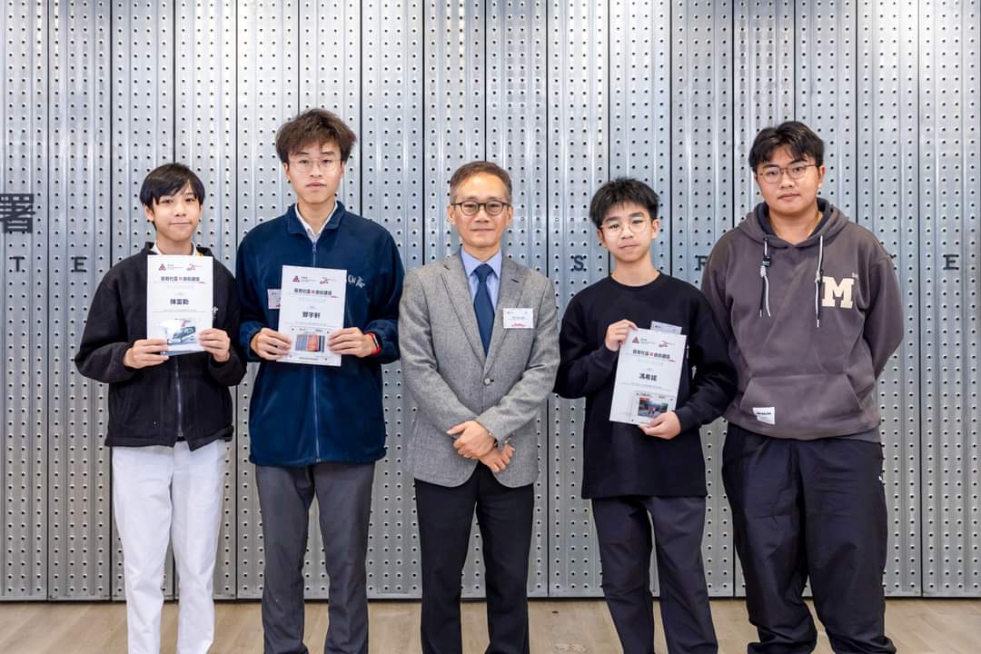得獎學生:5A梁文鍵、5B劉灼文、5D余浚浩